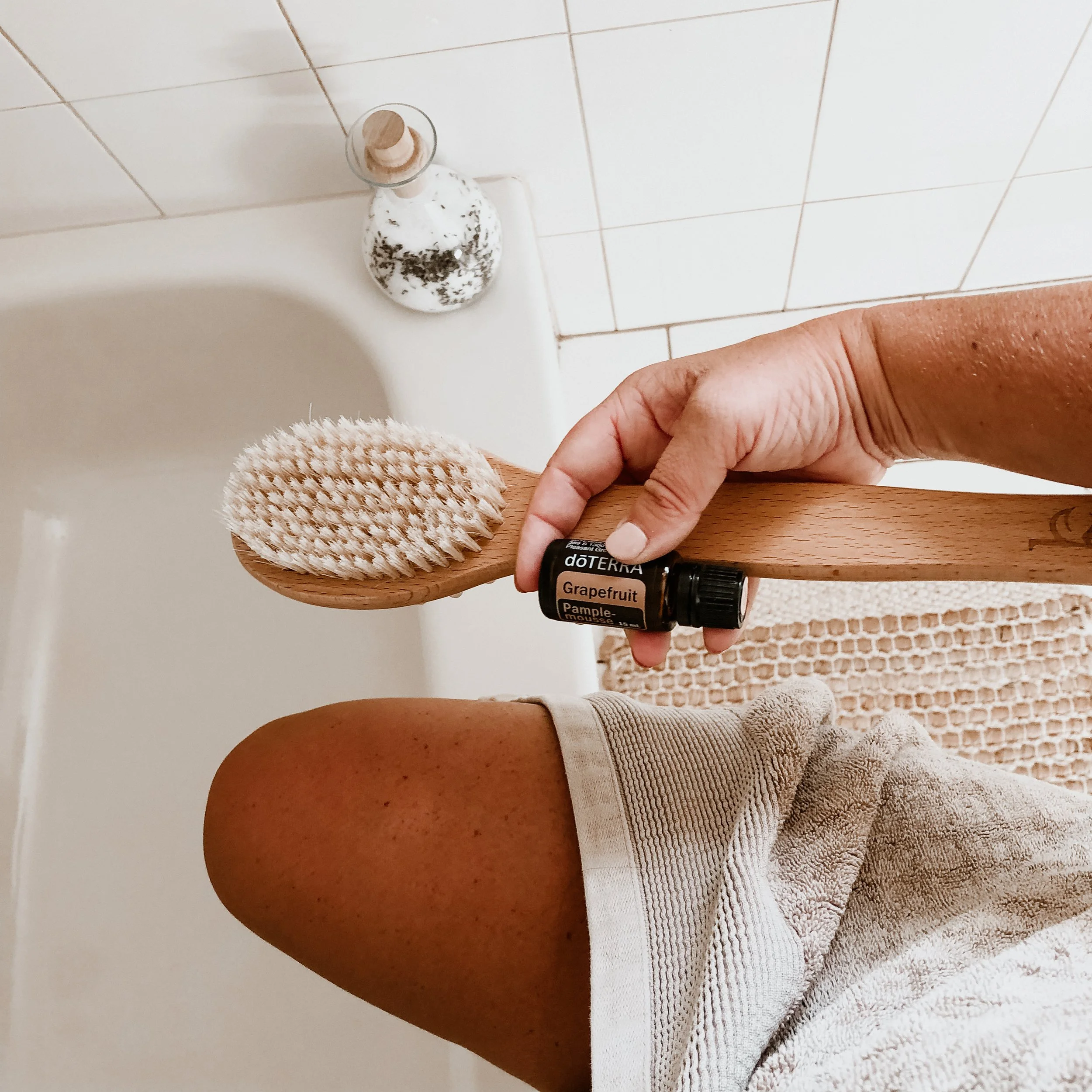Simply add a few drops of your chosen essential oil to your dry brush before use, or apply it to your skin after dry brushing.